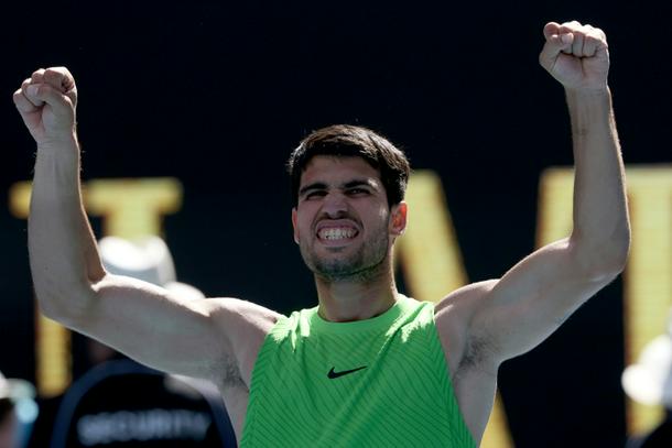 Melbourne (AFP) - Carlos Alcaraz powered into the Australian Open quarter-finals on Sunday and Novak Djokovic joined him without hitting a ball, as the next generation roared.
