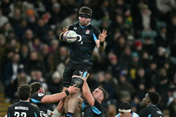 England's Tom Curry wins line-out ball during a 27-23 win over Argentina at Twickenham