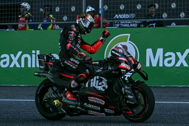 Aprilia’s Bezzecchi led from start to finish to top the podium in Buriram, with KTM’s Pedro Acosta second and Trackhouse’s Raul Fernandez third.