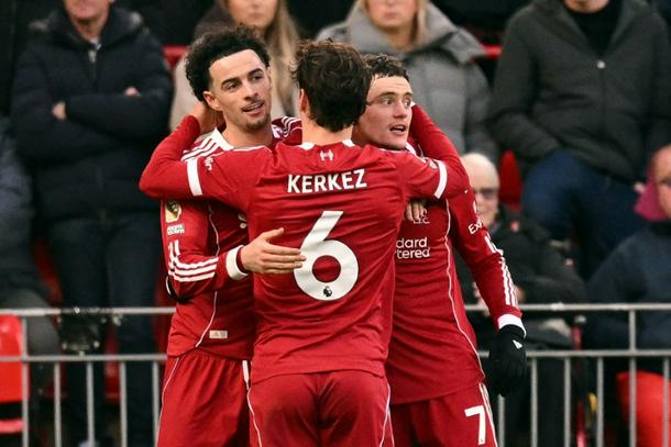 Liverpool's Florian Wirtz (R) scored his third Premier League goal of the season
