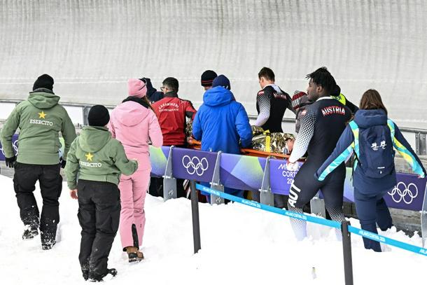 Austrian bobsleigh pilot Jakob Mandlbauer was stretchered off after his team's bob overturned in the four-man event at the Winter Olympics