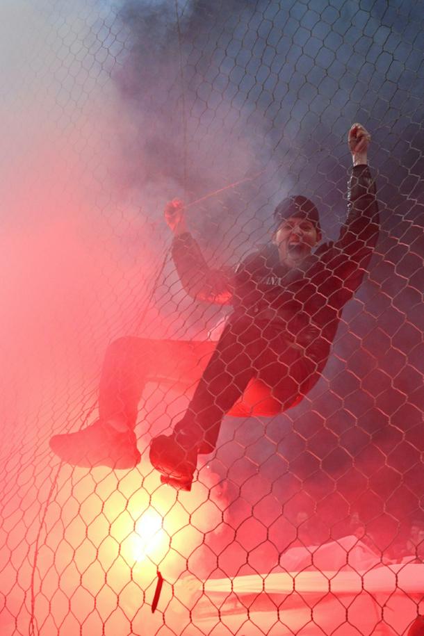 Outside the stadium, fans filled the streets as honking cars streamed past carrying supporters on hoods or hanging out windows, waving flags.