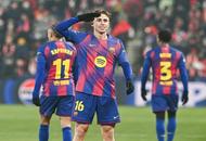 Fermin Lopez's first-half brace and second-half goals by Dani Olmo and Robert Lewandowski earned Barcelona a 4-2 …