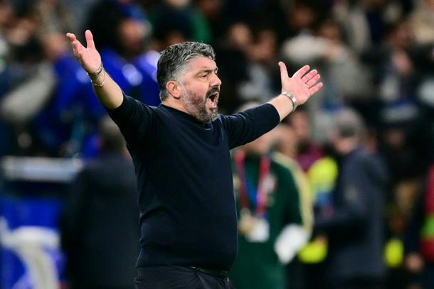 Italy's headcoach Gennaro Gattuso cut a tense figure on the touchline