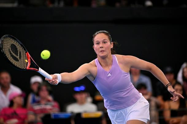Australia's Daria Kasatkina hits a return against Anastasia Potapova in Brisbane