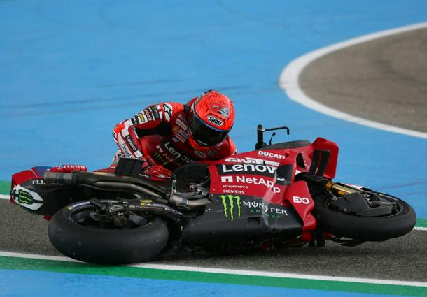 Alex Marquez came to grief shortly after his older brother’s mishap and it was two-time world champion Bagnaia who took the lead.