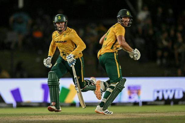 South Africa's Ryan Rickelton (L) and Aiden Markram led an overhaul of a competitive West Indies score in their first T20 international
