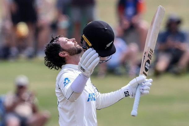 New Zealand’s Tom Latham celebrates his century