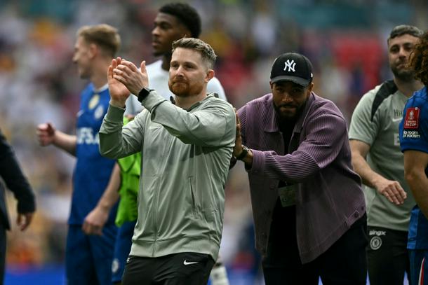 Chelsea interim manager Calum McFarlane (L) celebrates their win over Leeds.