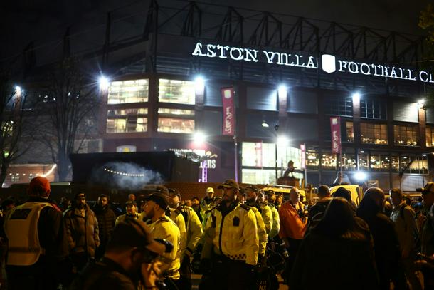 AFP saw a large police presence outside Villa Park, with officers wearing protective padding and carrying riot helmets. Police horses were also deployed.