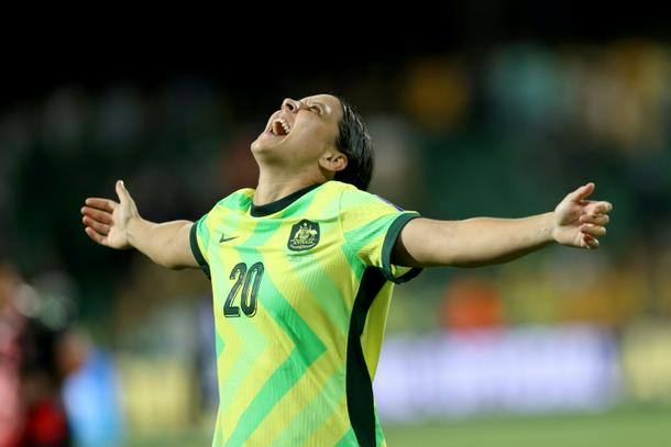 Australia's Sam Kerr celebrates victory over North Korea at the Women's Asian Cup in Perth