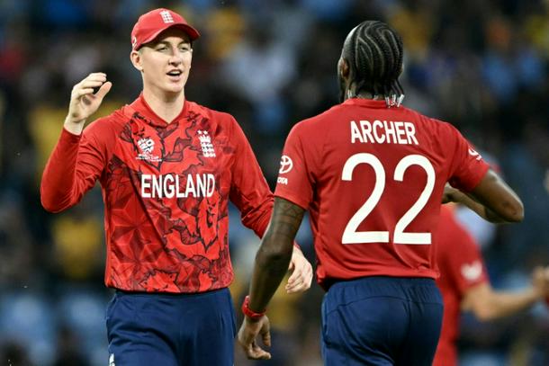 England's captain Harry Brook and fast bowler Jofra Archer celebrate their win over Sri Lanka