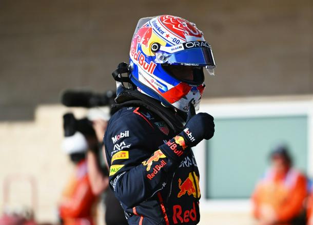 Sprint race pole qualifier Max Verstappen of the Netherlands and Oracle Red Bull Racing celebrates during qualifying ahead of the F1 Grand Prix of United States at Circuit of The Americas in Austin, Texas