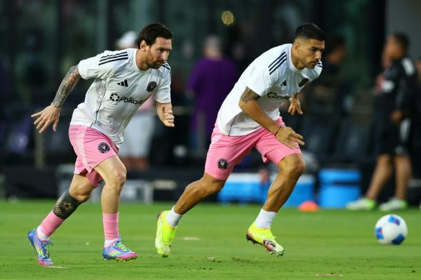 Luis Suarez (R) joined Lionel Messi at Inter Miami in January 2024